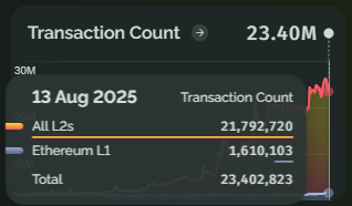 El 13 de agosto, más del 86% de las 23 millones de operaciones en Ethereum ocurrieron en las L2.
