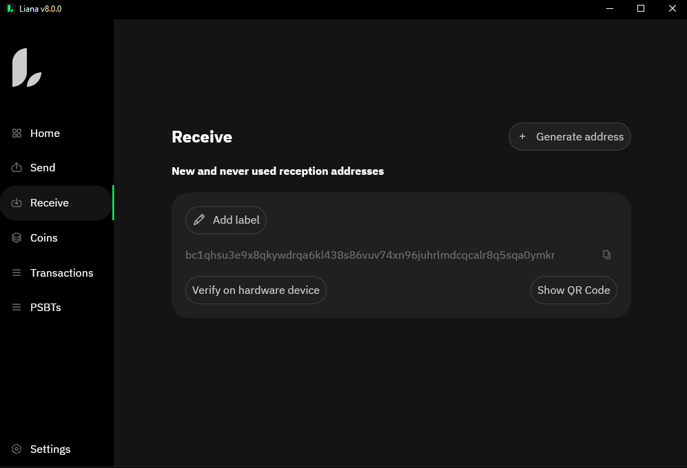 Una de sus características más relevantes de Liana Wallet es que se trata de una wallet de auto-custodia. Es decir que los usuarios tienen control total sobre sus fondos, sin depender de terceros para la gestión o seguridad de sus BTC.