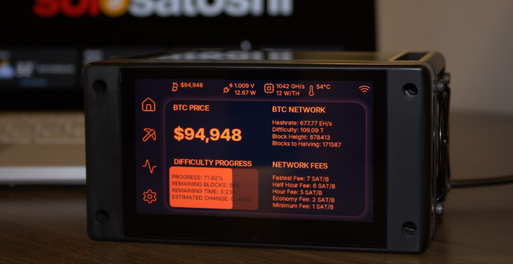 Uno de estos nuevos mini ASIC es el Touch de Bitaxe, en fase de desarrollo y que estará disponible en el mercado “pronto”, según SoloSatoshi, la compañía responsable que se dedica a elaborar aparatos portátiles de minería de Bitcoin para casa.