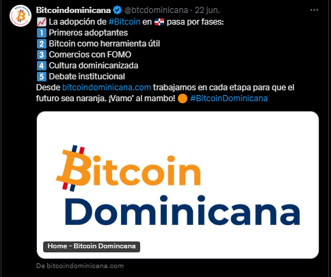 Mientras tanto, el movimiento para crear una economía circular de bitcoin sigue expandiéndose en República Dominicana. Esto, apoyando la creación de nuevas comunidades como el grupo «Bitcoin Latinas», que enfoca sus esfuerzos en empoderar a mujeres de los barrios, demostrando que la adopción de bitcoin en la isla se construye, un bloque a la vez, y con fuerza, desde la base.