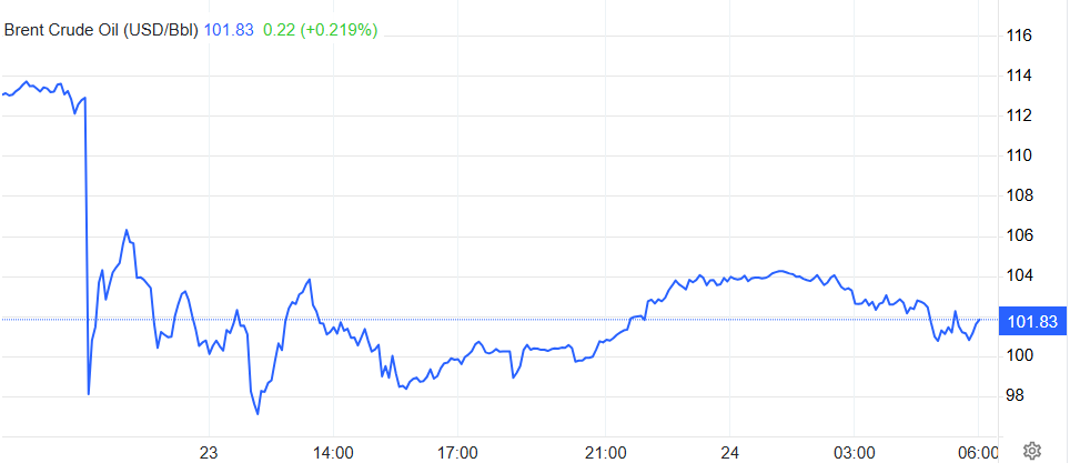 El precio del petróleo Brent está nuevamente por arriba de 100 dólares el barril. Fuente: TradingEconomics.
