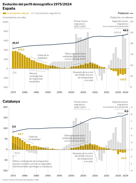 Una España y una Catalunya distintas: menos hijos, vidas más largas y muchos inmigrantes