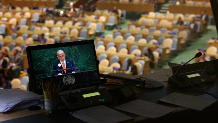 Netanyahu en la ONU: abucheos, aplausos y un QR ante un hemiciclo medio vacío
