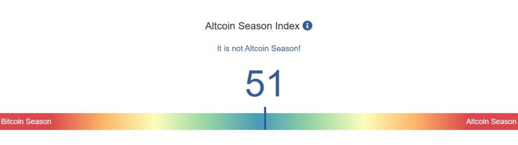 El Altcoin Season Index es una métrica desarrollada para medir si el mercado está en una temporada de altcoins basada en el desempeño relativo de las altcoins frente a BTC. Actualmente, este índice está en 51, lo que significa que aún no está en temporada de altcoins, pero el aumento del volumen de negociación de altcoins en Binance sugiere que podría estar cerca.