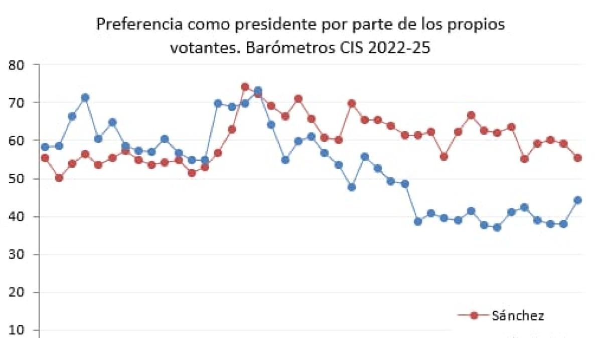 Alberto Núñez Feijóo estaría recuperando apoyos entre los votantes de su partido, mientras que Pedro Sánchez vuelve a bajar después de una relativa estabilidad. Hay señales de recuperación de Feijóo. El PP sube y se estaróia frenando el crecimiento de Vox, partido que se mantien cerca del 20%.