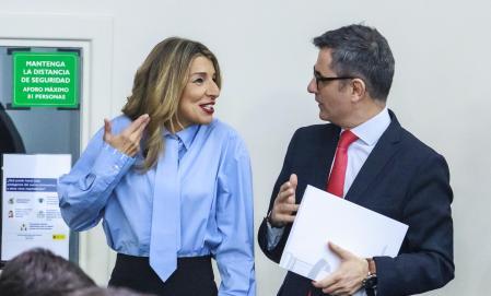 La vicepresidenta y ministra de Trabajo y Economía Social, Yolanda Díaz; el ministro de la Presidenci, Félix Bolaños