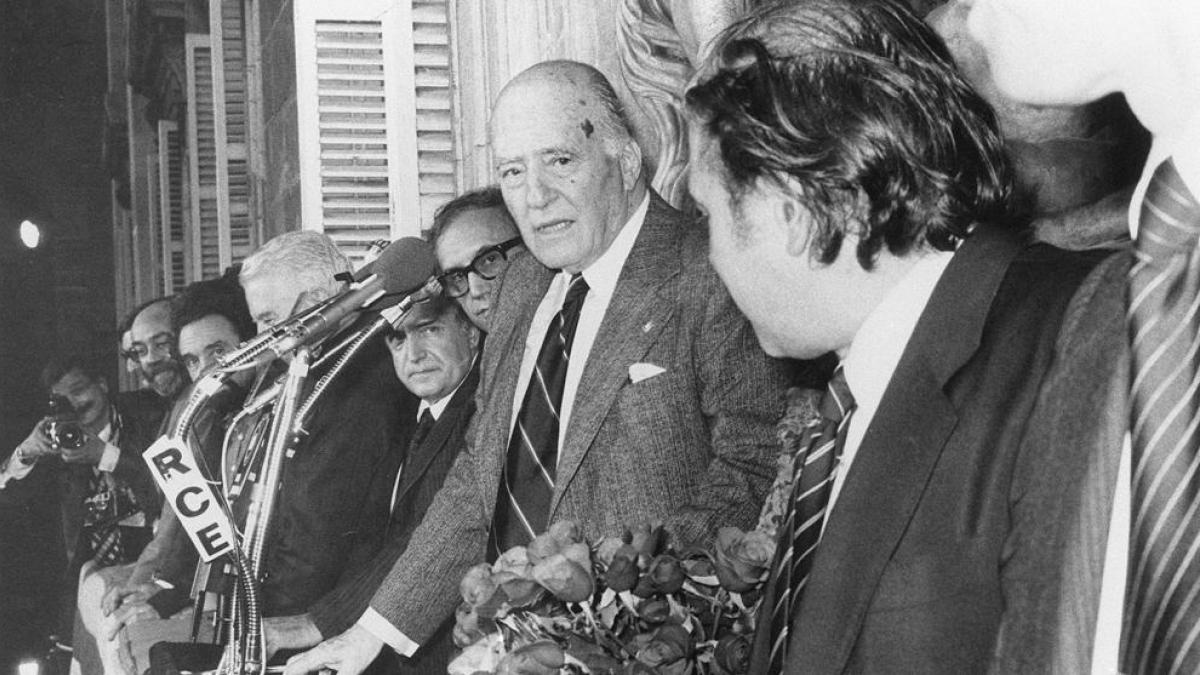 Josep Tarradellas descendiendo del avión a su llegada a Ciudad de México en 1954 y a Barcelona en 1977