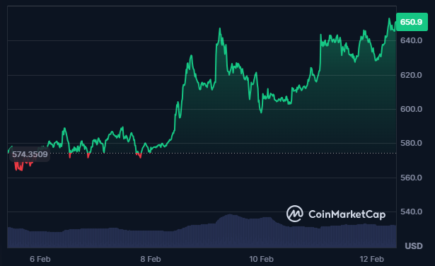 El precio de BNB subió desde los 618 dólares hasta los casi 651 dólares tras la noticia.