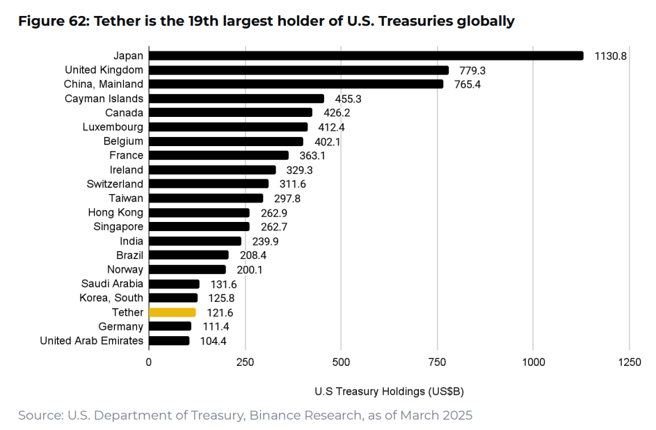Se dice que se prohíben las monedas digitales emitidas y que sean un pasivo de la FED, pero al exigirle a las stablecoins que mantengan sus reservas en instrumentos emitidos por la Reserva Federal, no solo aumentan la demanda de activos del tesoro estadounidense, sino que básicamente se vuelven un proxy de esta institución. Ya en la actualidad, tan solo Tether es el decimonoveno mayor poseedor de instrumentos del Tesoro de Estados Unidos en todo el mundo.