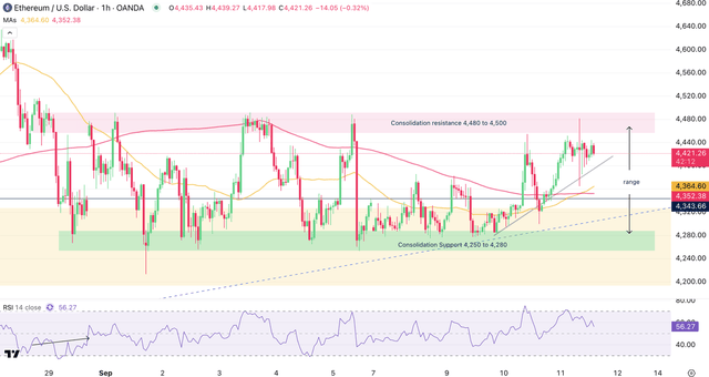 No obstante, en momentos en que ETH cotiza alrededor de los USD 4.400, los analistas ven probable un periodo de consolidación en el corto plazo, sobre todo si no se da una ruptura decisiva de esa zona.