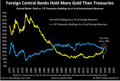 Los bancos centrales ya muestran movimientos que coinciden con la preocupación expresada por Paulson. Esto, porque por primera vez desde 1996, el valor de las reservas de oro de los bancos centrales supera al de los bonos del Tesoro de Estados Unidos, como lo informó CriptoNoticias recientemente.