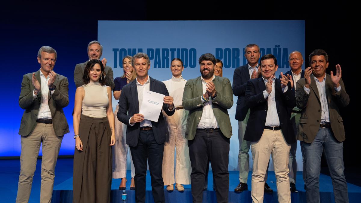 La cita, que ha tenido lugar en Murcia, autonomía que preside el popular Fernando López Miras, ha permitido a los populares visibilizar aún más su postura en materia de inmigración. El propio Feijóo, durante su intervención en el acto de clausura, ha querido ser claro y desmarcarse tanto de la postura del PSOE como de Vox. “La solución no es ni regularizarlos a todos ni echarlos a todo al mar. Es poner orden y aplicar la legalidad”, ha afirmado Feijóo, quien rechaza que los inmigrantes “no son dueños de sus actos” (PSOE) ni que son “delincuentes por defecto” (Vox).