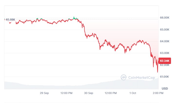 El precio de bitcoin (BTC) fluctúa cerca de los 61.900 dólares. Tan solo hace 24 horas, la moneda digital se cotizaba por 64.000 dólares. El descenso está directamente vinculado a la escalada del conflicto bélico que se está produciendo en Medio Oriente y que tiene como protagonistas a la organización Hezbolá, Israel, el Líbano e Irán, entre otras naciones y grupos armados.