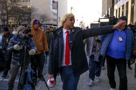Un doble de Trump, ayer junto al tribunal de Nueva York que lo sentenció