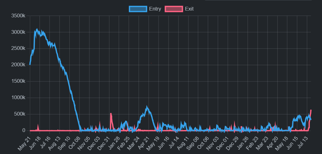 No obstante, los validadores que quieren entrar empiezan a decaer: hay unos 350.000 al momento de redactar esta nota, mientras los de salida se cuentan en casi el doble.