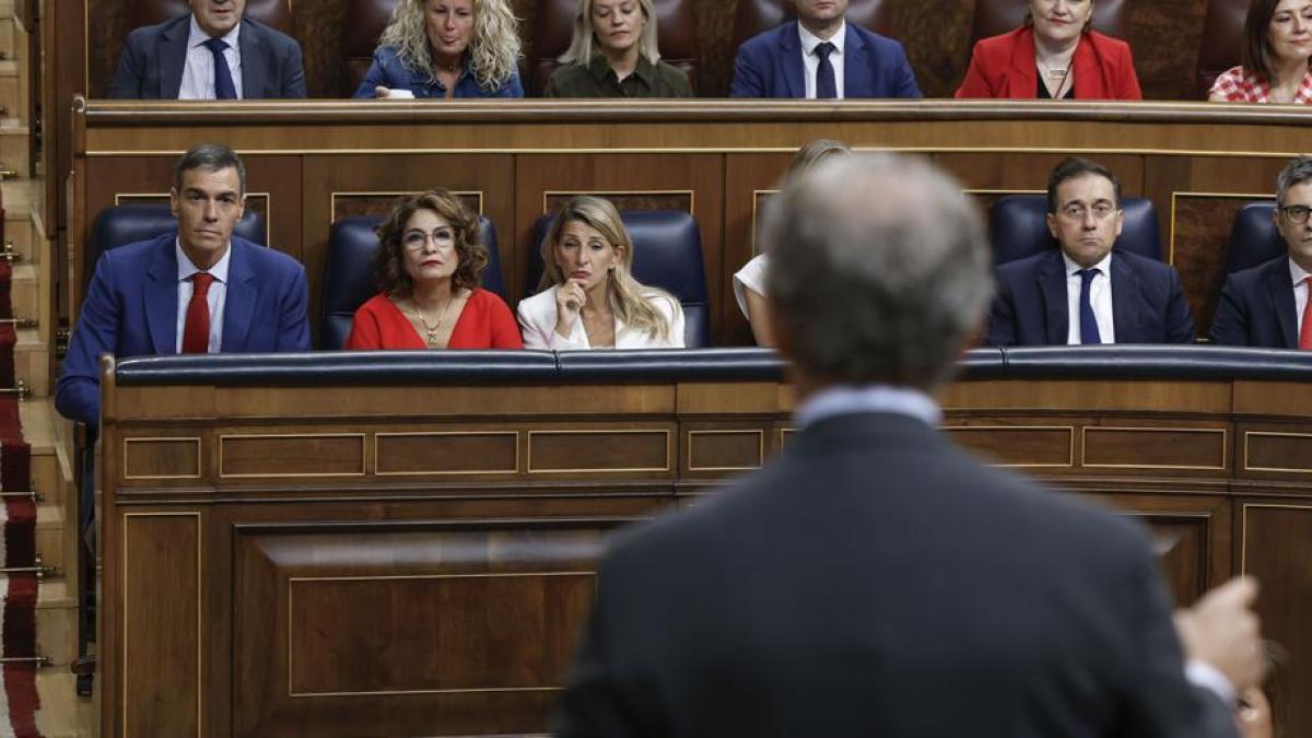 Sánchez escucha a Feijóo durante la sesión de control de esta semana
