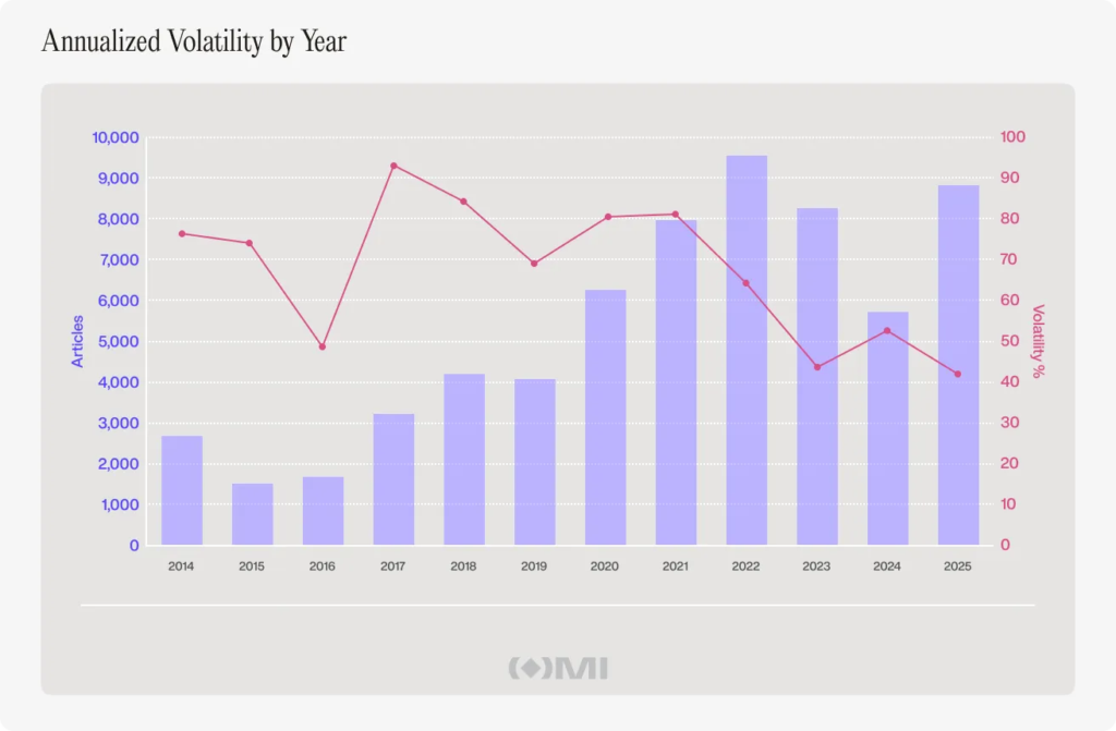El estudio cruzó 63.926 titulares de un medio especializados en cripto, publicados entre enero de 2014 y diciembre de 2025, con los precios de cierre diarios de BTC del índice compuesto de TradingView. Eso generó 4.381 días con datos comparables de noticias y precio.