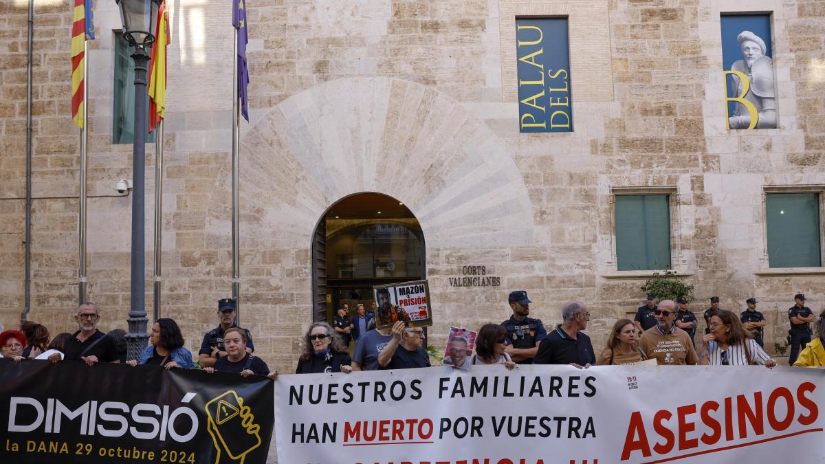 Asociaciones de víctimas de la Dana se concentran ante las Corts Valencianes con motivo de la celebración del Debate de Política General para pedir la dimisión de Mazón,