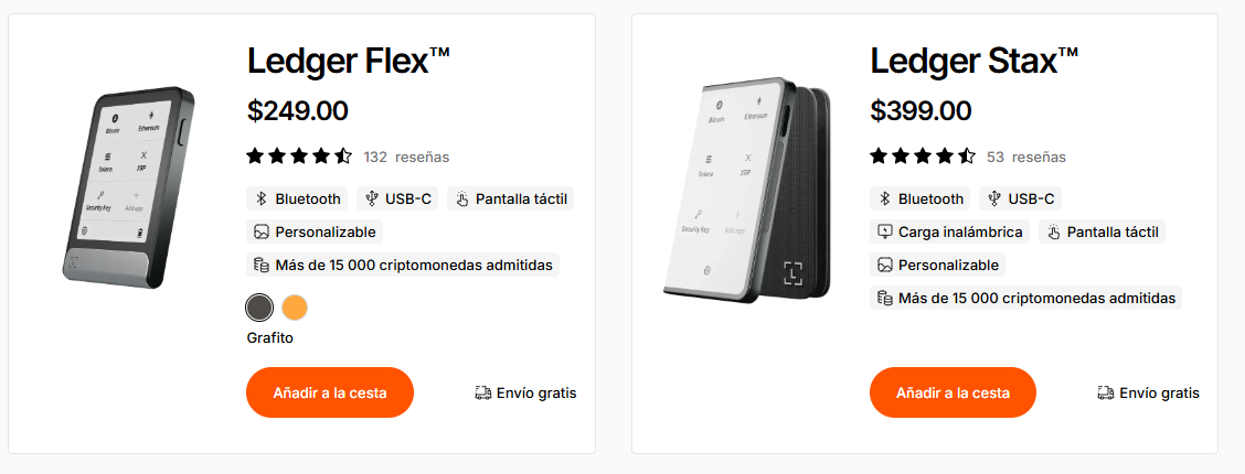 Modelos Flex y Stax de las hardware wallets Ledger.