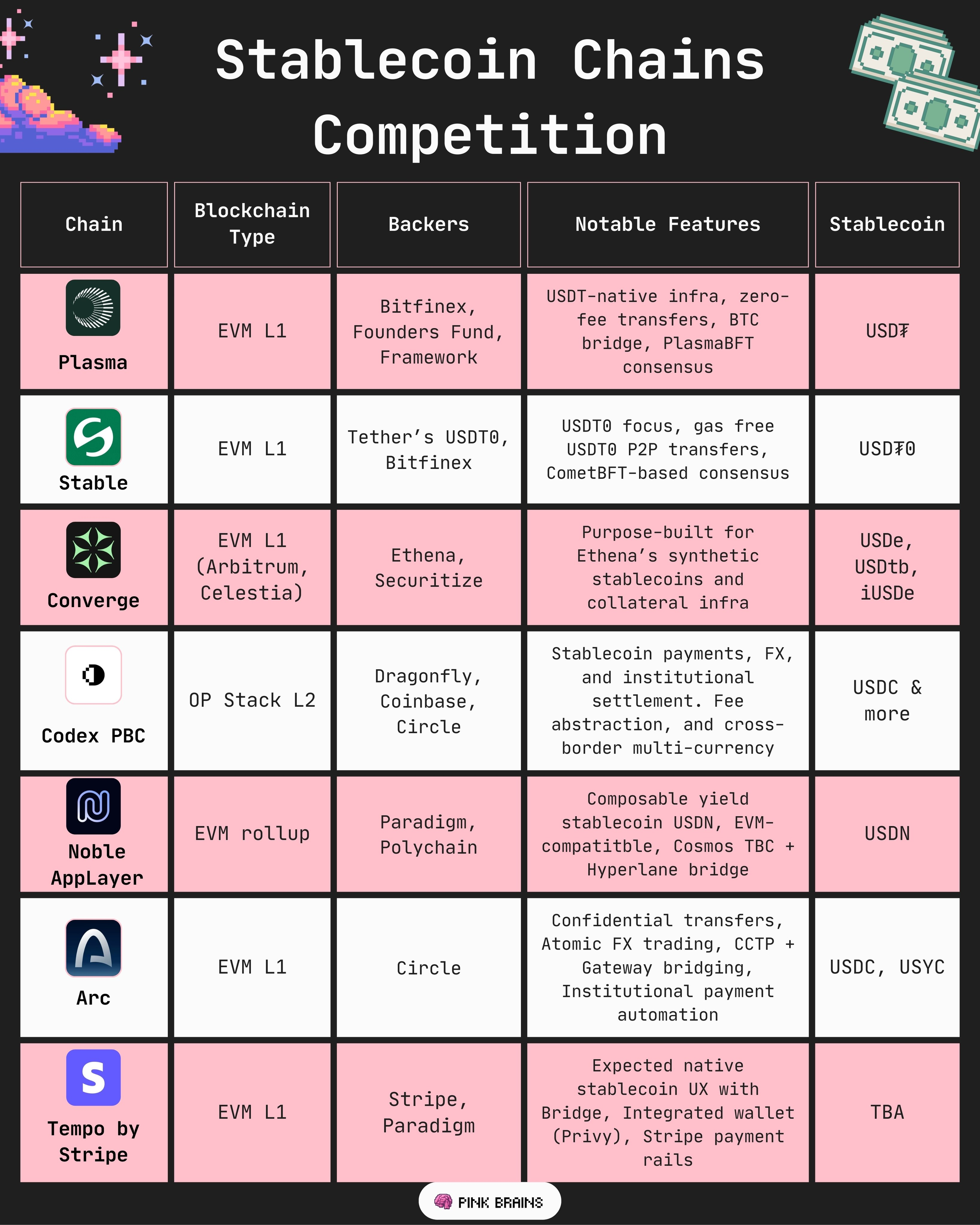 Las redes dedicadas exclusivamente a monedas estables, o «stablechains», están captando la atención de la industria de las criptomonedas. Proyectos como ARC de Circle, Tempo de Stripe, Stable, Converge, Codex PBC y Plasma han emergido como alternativas a Ethereum, Solana e incluso Bitcoin, soluciones tecnológicas más generalistas.