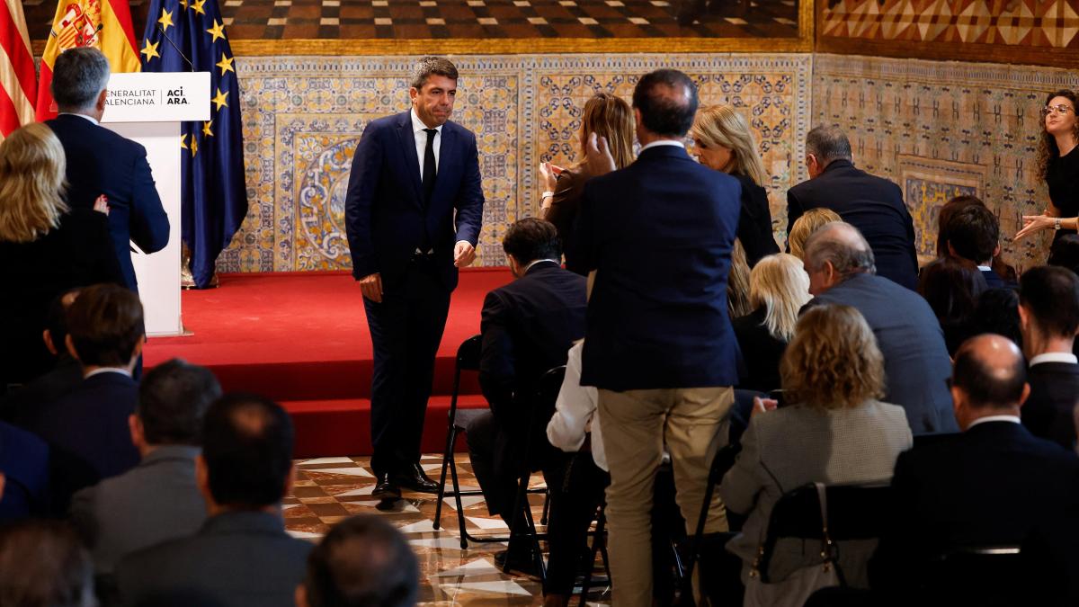 Un acto -una especie de homenaje a las víctimas y a los afectados (sin las víctimas ni los afectados)- al que han acudido todos consellers al completo, los tres presidentes de las diputaciones del PP e importantes alcaldes y alcaldesas como la de Valencia, María José Català. Un público que ha aplaudido en pie las palabras del president. La declaración se ha celebrado en el solemne Saló de Corts, lugar reservado para los actos de más simbolismo como la entrega de los galardones del 9 d’Octubre que, por cierto, este año no se celebraron por una alerta naranja.