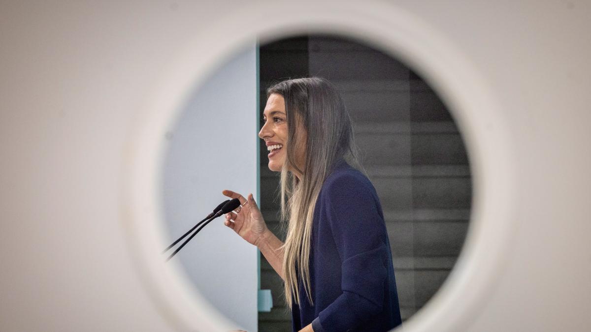 Míriam Nogueras, en rueda de prensa en la sede de Junts