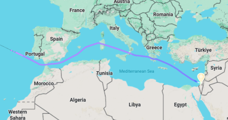 Imagen de la ruta que ha tomado el avión de Netanyahu