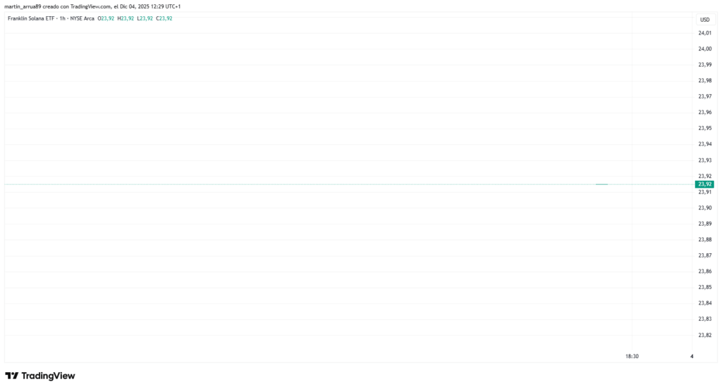 Ayer, 3 de diciembre, debutó el fondo cotizado en bolsa (ETF) al contado de solana (SOL) gestionado por Franklin Templeton, el gigante financiero que administra 1,6 billones de dólares en activos. El estreno fue discreto, ya que el ETF no registró entradas ni salidas netas de capital en su primera jornada.