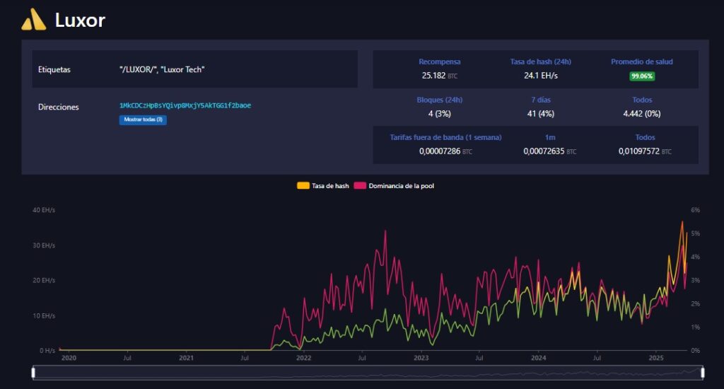Al momento de la redacción de este artículo, su hash rate es de 6.25 EH/s, según MiningPoolStats. También representa el 1.39 % del poder de cómputo total de toda la red de mineros.
