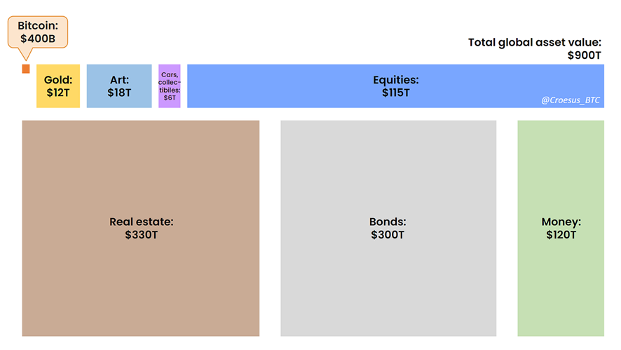 Jesse Myers, analista de mercados financieros, revela que el empresario utilizó un estudio que había realizado en febrero de 2023, el cual le brindó datos importantes, como, por ejemplo, una estimación de 900 billones de dólares distribuidos en activos de reserva de valor en el mundo.