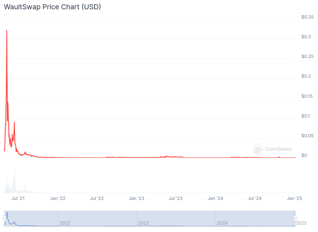 ¿Qué ocurrió luego? Que así como vi subir a ese activo digital, cuyo nombre es WaultsSwap (WEX), también vi cómo repentinamente se desplomaba «a cero» y junto con ello caían mis sueños de riqueza fácil y rápida.
