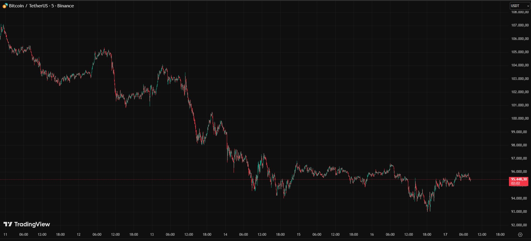 La entrada masiva de stablecoins a Binance se da cuando el mercado ha mostrado una fuerte presión bajista. El precio de bitcoin retrocedió desde los USD 106.000 hasta niveles alrededor de USD 95.000, lo que representa una caída superior al 10% en solo una semana.