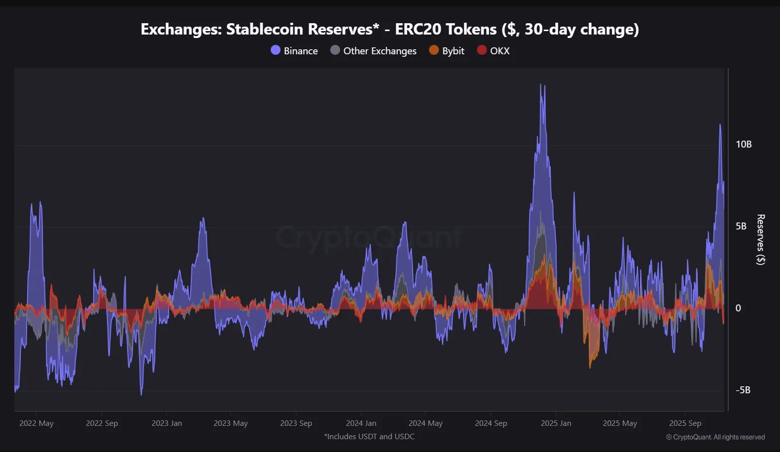 Binance ha recibido una cantifad masiva de stablecoins en el último mes. Fuente: CryptoQuant.