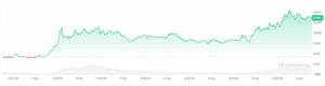 Este incremento consolida su posición como la principal stablecoin. El récord se produjo tras un aumento de 1,77 % en los últimos siete días, lo que supuso una inyección neta de 3.260 millones de dólares desde los 184.700 millones anteriores, como se aprecia en el gráfico.