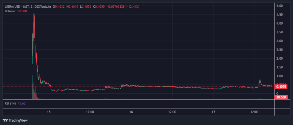 En su caso, reveló que puso en LIBRA menos del 0,1% de su patrimonio cuando el precio estaba en USD 0,46 y aún no ha vendido sus tenencias. Actualmente, como se ve a continuación, este activo cotiza a USD 0,40.